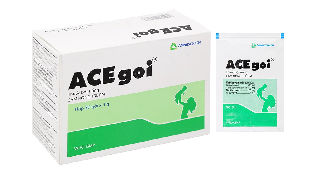 Thuốc cốm ACEgoi chỉ định trong điều trị nóng, ho, sổ mũi, nghẹt mũi, nhức đầu.